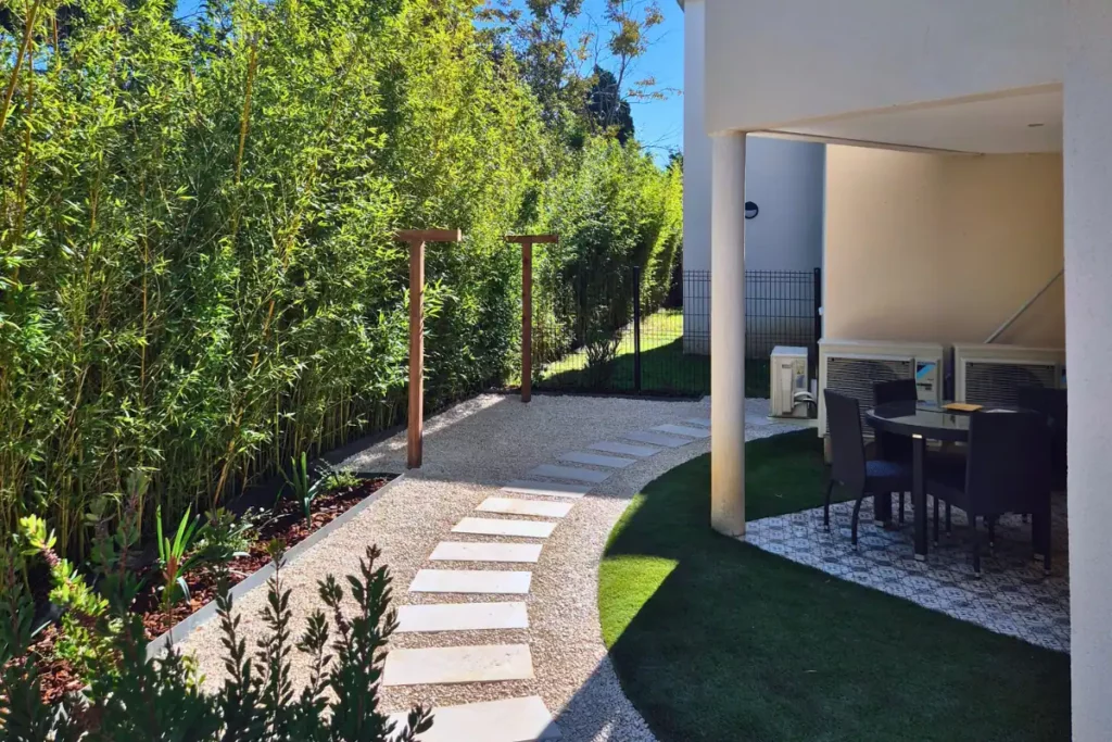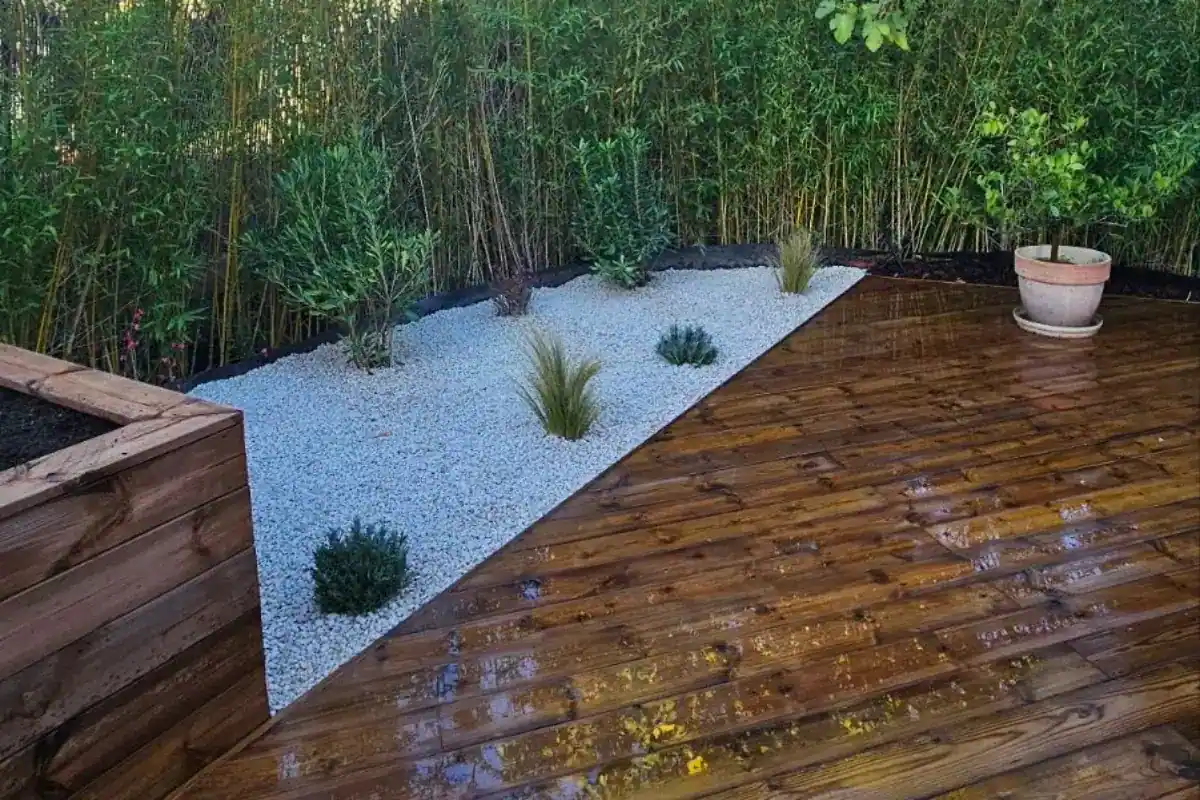 La touche finale de cet aménagement repose sur la plantation de végétaux et la pose de bordures, permettant de délimiter les jardinières et d’organiser harmonieusement les différents espaces du jardin. Ces plantations apportent couleur, relief et naturel, tout en renforçant l’équilibre et l’esthétique globale du projet. Le résultat est un jardin structuré, esthétique et facile à vivre, parfaitement intégré à l’habitation et pensé pour profiter pleinement de l’extérieur. Cette réalisation illustre le savoir-faire de Boma Concept, spécialiste de la création de terrasses en bois et de l’aménagement extérieur dans le Vaucluse. Nos équipes accompagnent chaque client avec écoute, disponibilité et exigence, afin de concevoir des espaces extérieurs durables, fonctionnels et adaptés à leur mode de vie.