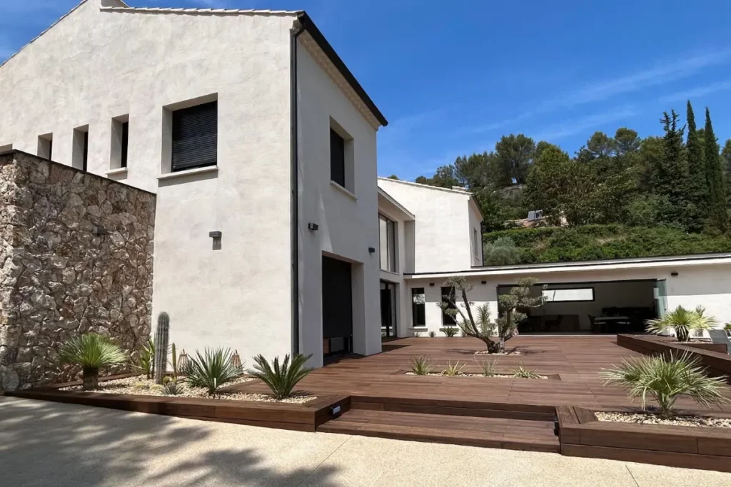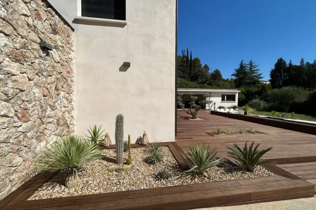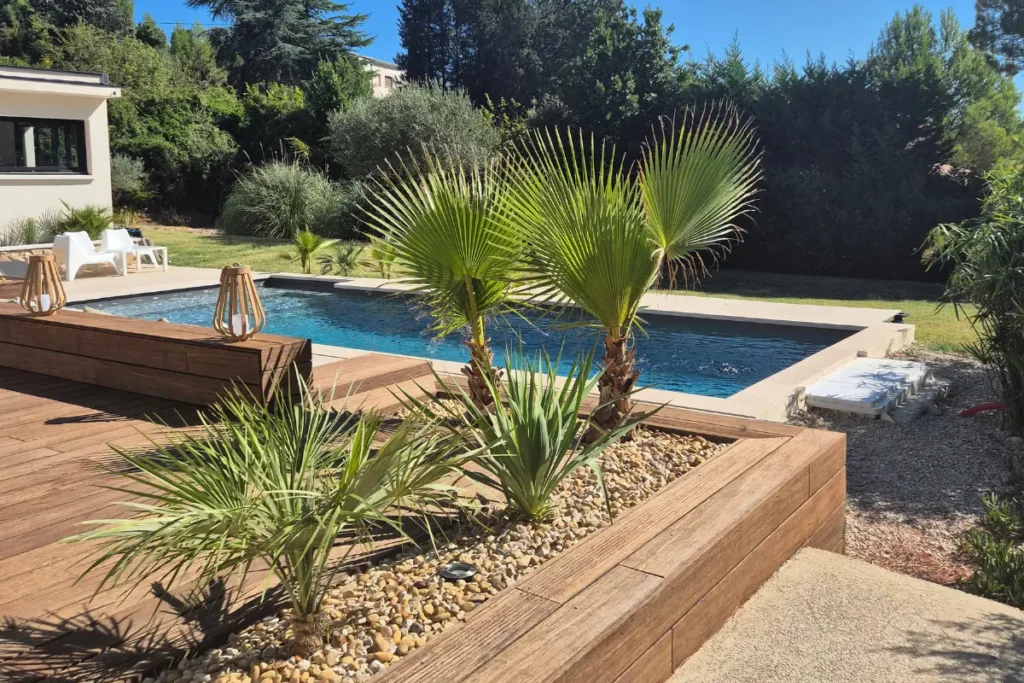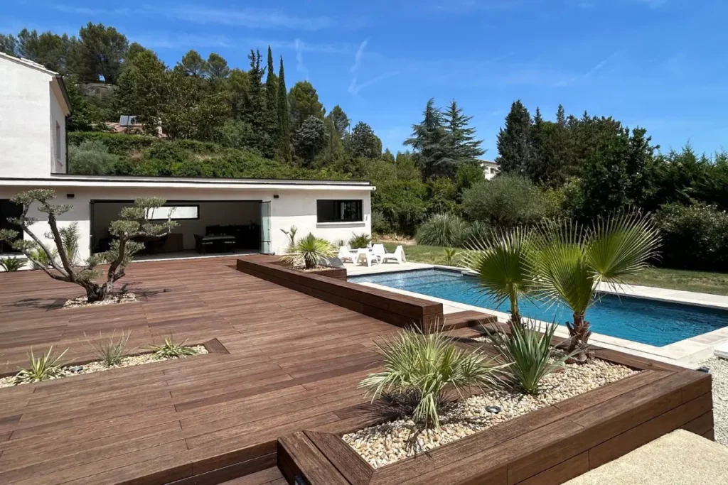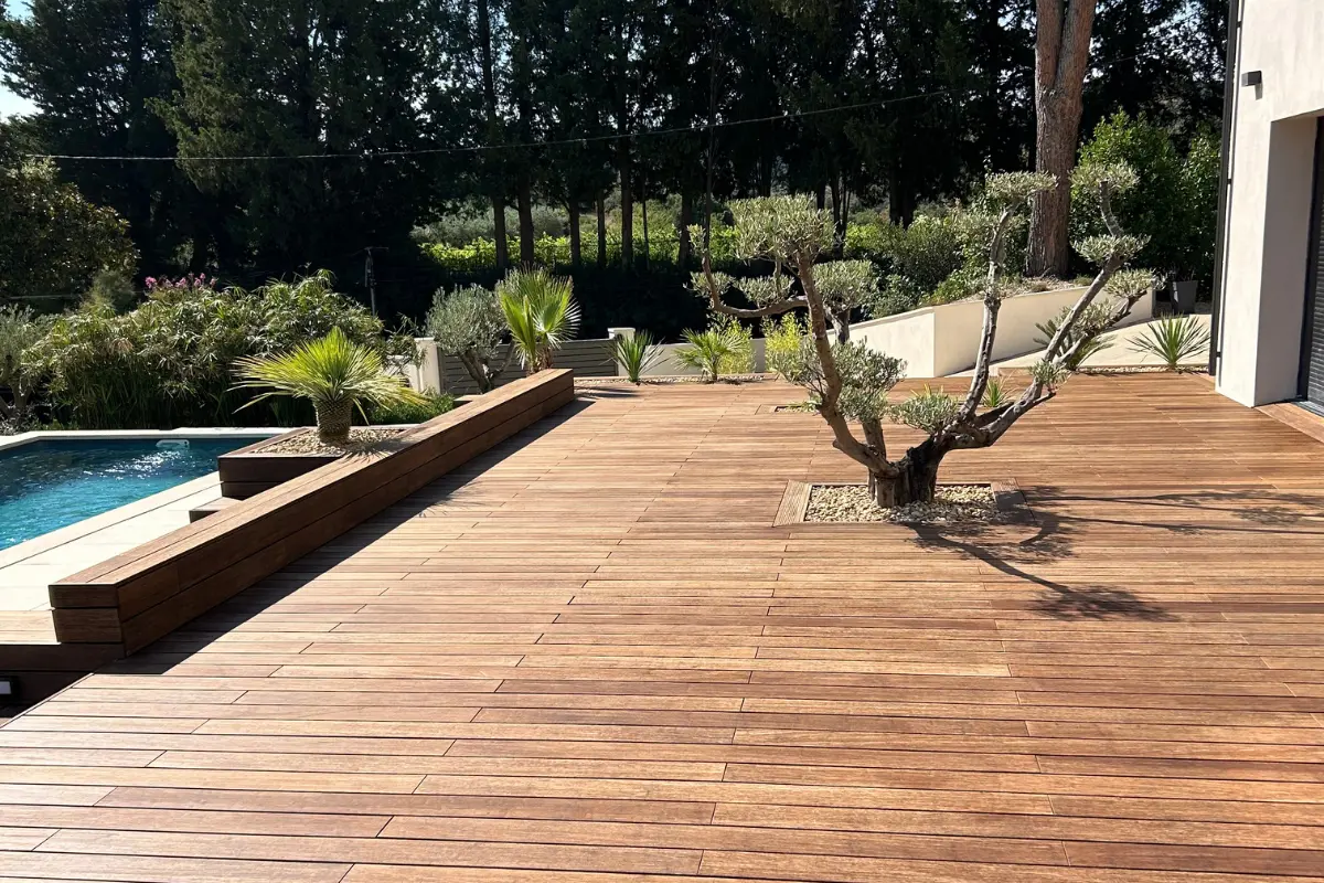 Nous accompagnons également nos clients sur l’entretien et le nettoyage de terrasse en bois, pour conserver la beauté et la durabilité des matériaux, même dans un environnement humide proche de la piscine.